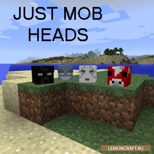 Мод на головы мобов Just Mob Heads является еще одним модом, который позволит пополнить ваш зал славы очередными трофейными головами мобов.